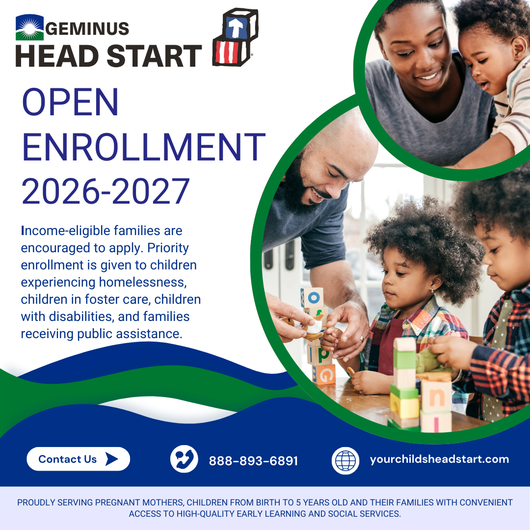 Early childhood education is a vital precursor to success in school—and beyond. Geminus connects your family to a variety of services, including Head Start. We also provide assistance to childcare providers, helping ensure that families have access to quality care.